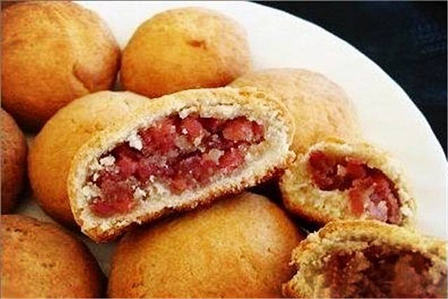 云腿月饼采用昆明呈贡的子麦面粉、水油等混合制成酥皮烘烤而成。外观层起白色透出淡淡的金黄,内馅采用宣威火腿的腌制,配以冬蜂蜜、猪油、白糖等制成馅心。食之酥松香松,甜中带咸,油而不腻,有浓郁的火腿香味,是滇中地区中秋佳节的必备食品。