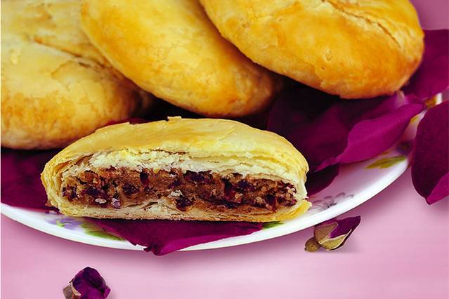 鲜花饼是一款以云南特有的食用玫瑰花入料的酥饼,是具有云南特色的云南经典点心代表,也是云南最具特色的伴手礼。鲜花饼在云南当地烘焙品牌大都均有销售。鲜花饼的大致做法是用含苞欲放或者微微开放的玫瑰花的花瓣制作成玫瑰花馅,加之以面粉、香油、白糖、蜂蜜等配料焙烤而制成,新鲜出炉的鲜花饼酥软爽口、花香浓郁、沁人心脾。