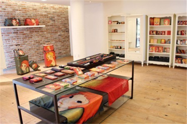 陆心媛是以梦幻少女系列插画而著名的韩国著名画家。这家以她的画作为主题的时尚商品店仿佛一个童话世界。店内出售的包包、鞋子、钱夹等产品被注入俏皮可爱的少女形象。
