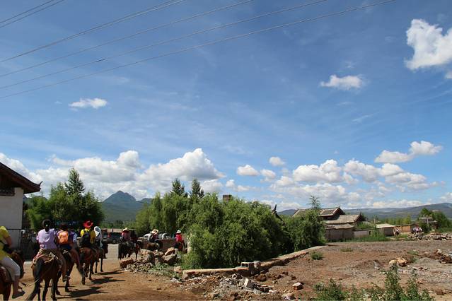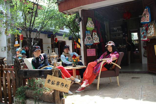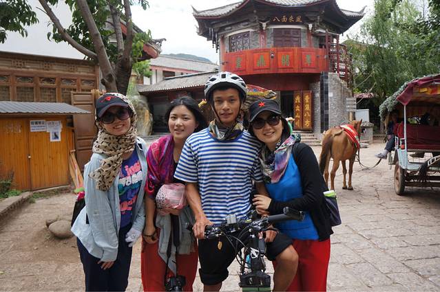 古城里面有很多团可以报,之前在攻略里就看到说去拉市海啊茶马古道之类的地方还是要报团会比较划算,自己去的话骑马什么的就很容易被坑。。。于是。。我们就找了家旅行社,和那小哥一直在侃,本来其实也就80一个人,包括茶马古道、拉市海和束河古镇,包括骑马、坐船、和一顿中饭,后来,反正我们也没事,就砍价,聊天,小哥本来硬是不肯啊,后来店里来了越来越多的人,小哥看我们给他们家带来了人气,也就便宜了个5块钱,不过感觉还挺开心的。看来我们的聊天功力随着搭车的进程而不断长进啊!