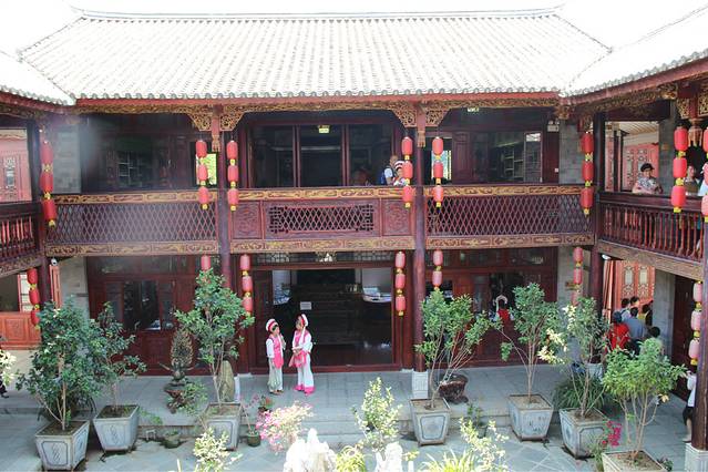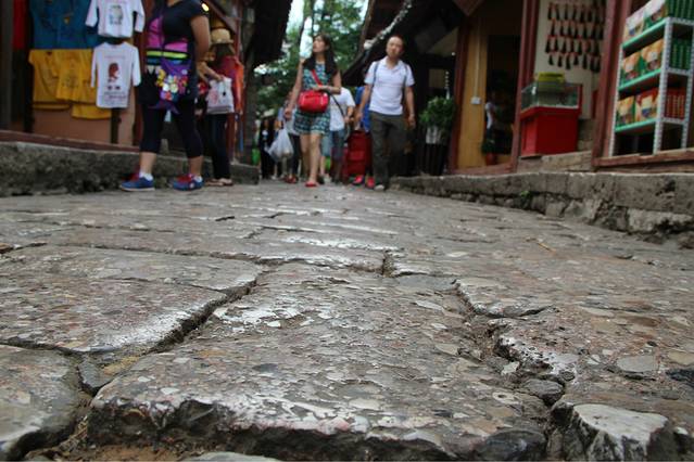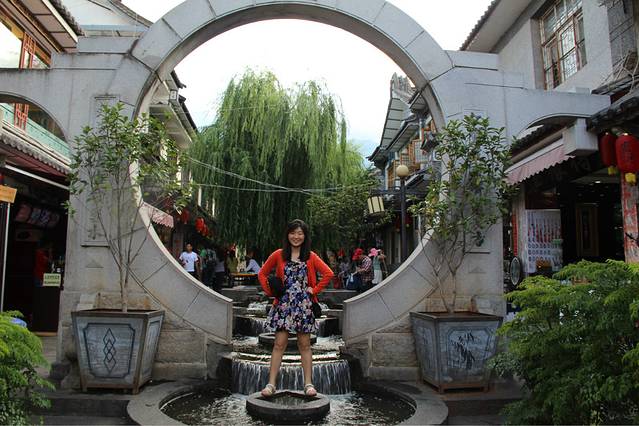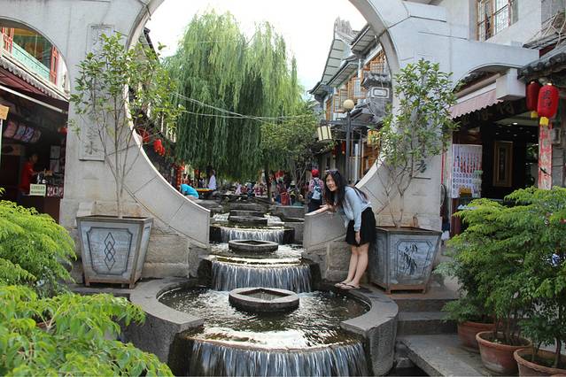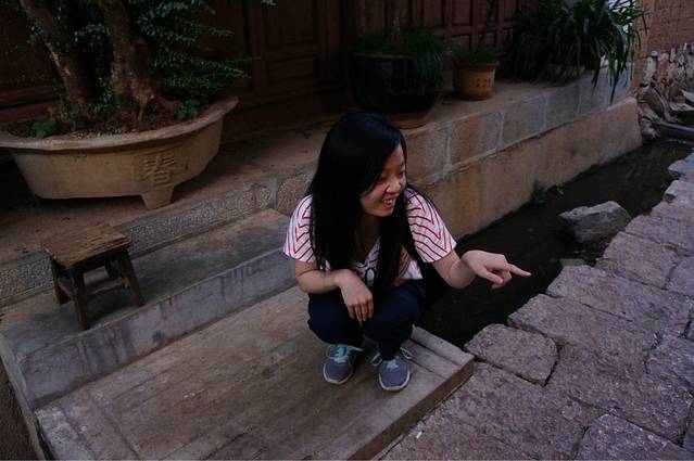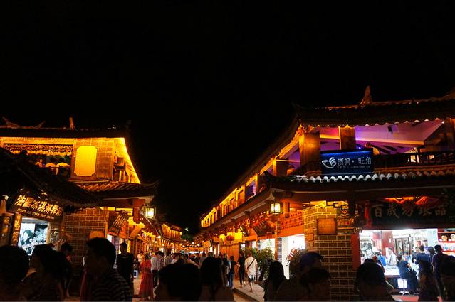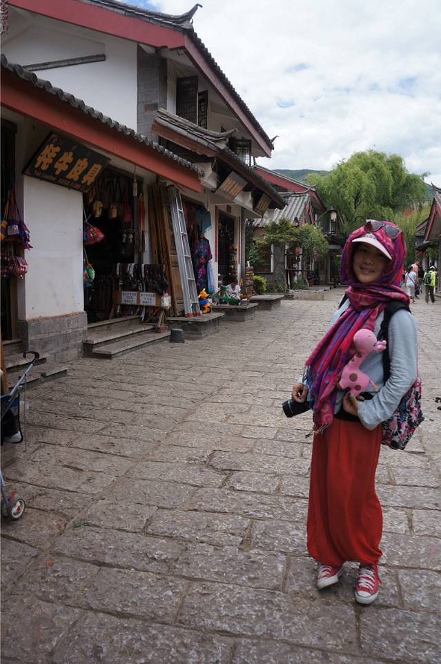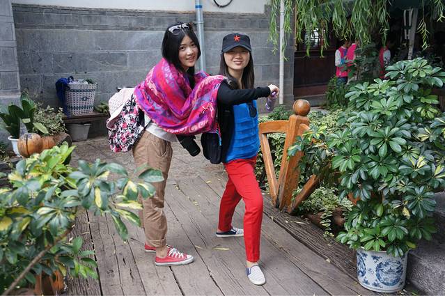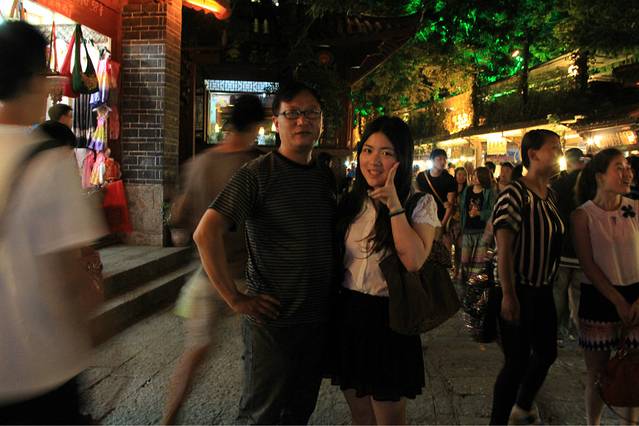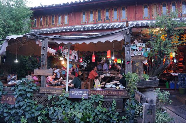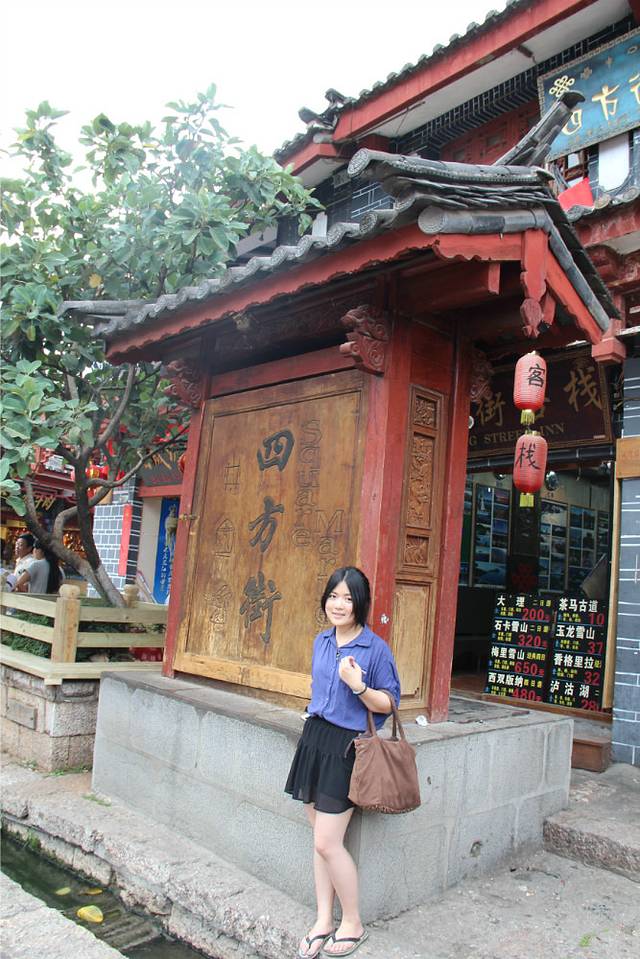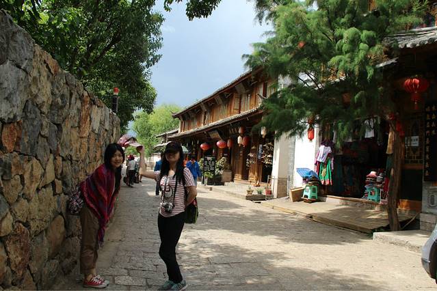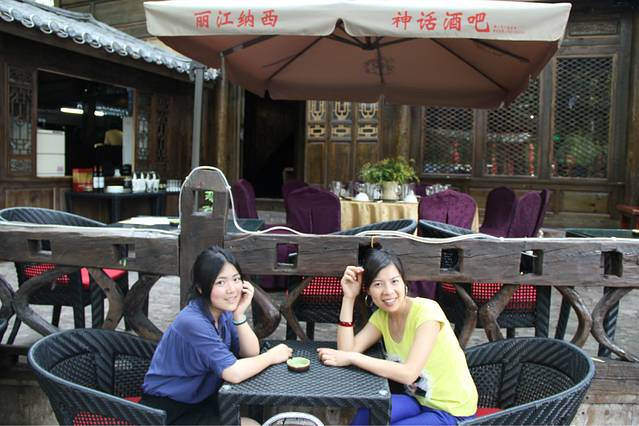 搭车一路从大理到了丽江,很顺利,车里有两个大叔,还有两个姐姐,都是川渝那一边的,本来只是想让他们带我们到江尾,我们再搭车的,结果一问,他们也去丽江,哈哈,正好就挤一点坐在后面,好在他们的车是七座的。从早上十点多的样子一直到下午两三点才到丽江,在南门那儿找了家饭店,我们一起吃了饭,大叔还说顺便帮我们两学生开一间房。。。啧啧。。。真是太不好意思了。。。这还是我第一次碰到搭车还包住的。。。anyway,人家是大款,并且是善良的大款。。。我们在大研古城放好行李之后就去古镇里逛了一下。他们两位大叔就跟着纳西族姐姐到了神话2去谈生意了。。。