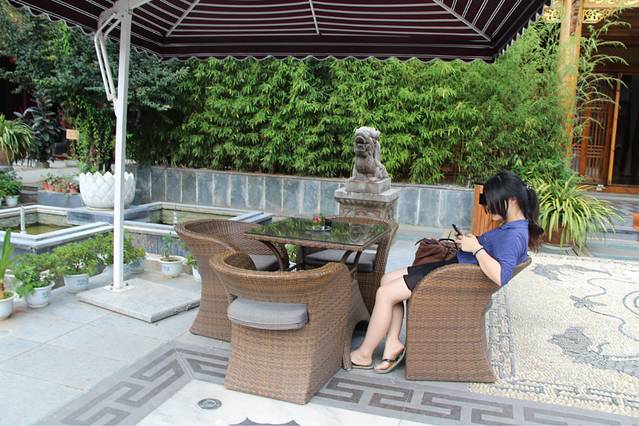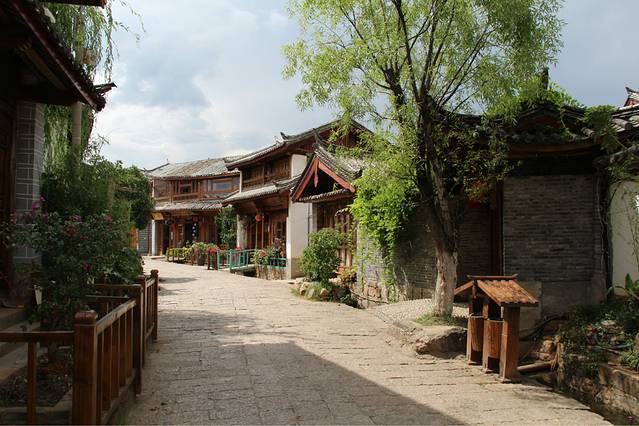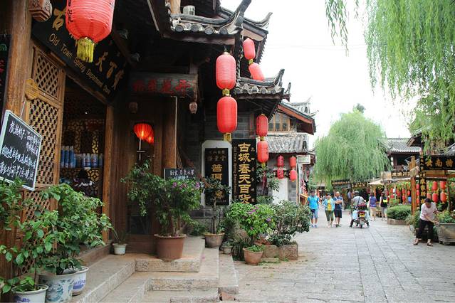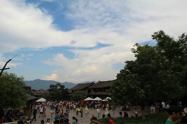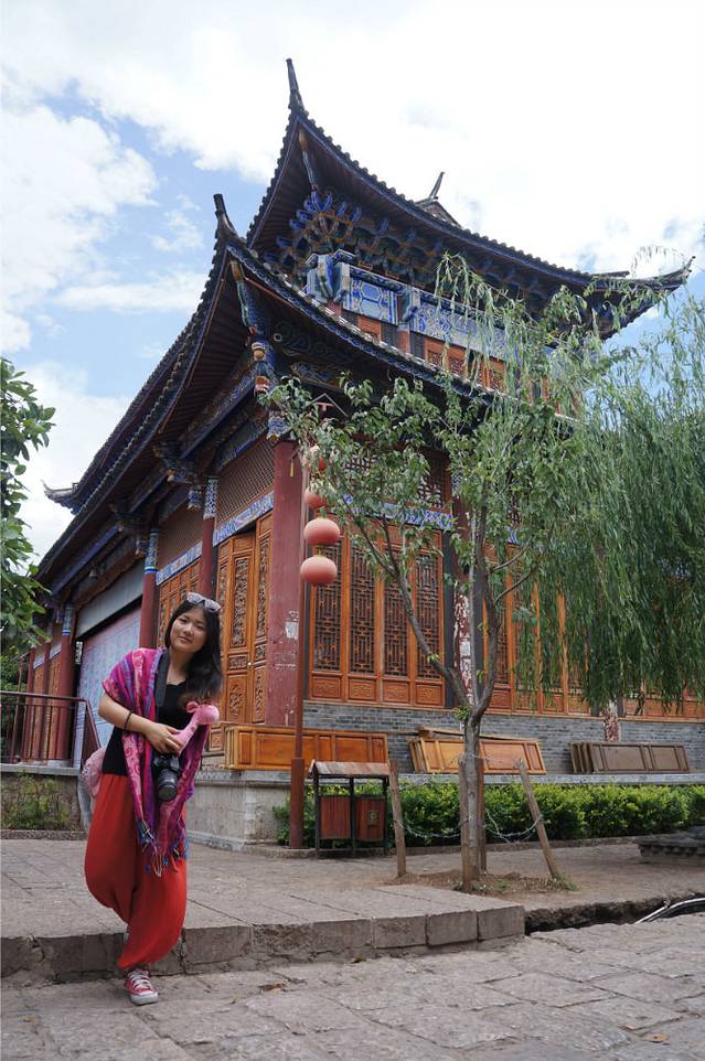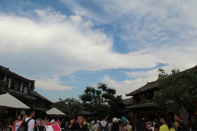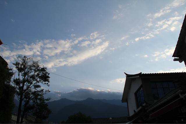 第二天,我们还有另外一个同学也到丽江来玩,于是和向叔他们道别,就去找我们这种穷游族该住的地方了,就在南门那边,八河里面,一家叫做驴家客栈的地方,床位才18,后来打电话给店主,他接我们去看,感觉好像还行,反正就睡一下,洗个澡这样,就住下了,在那边的也有很多牛人,什么骑行去虎跳峡之类的,根本就不足为奇。。。好吧,我们真心不能比。老板一看也是那种很厉害的驴友,皮肤黝黑黝黑的,腿部的肌肉线条更不用说了。。。咳咳。。。我们在驴家客栈等小伙伴的到来,想着一天被荒废了,但其实这种慢节奏也是我想要体验的,我不想为了去景点而去景点,坐在驴家大院,看着湛蓝的天空,厚厚的云层,老天还附赠了一场及时雨,上上网,聊聊天,这种感觉真的是太棒了,在丽江发呆,时间过得也特别快,不一会儿我的小伙伴就到了。时间比较尴尬了,已经下午两点了,去拉市海也不可能了,于是就打算带我们新来的小伙伴去大研逛一圈,看看我们昨天还没有走到的地方。