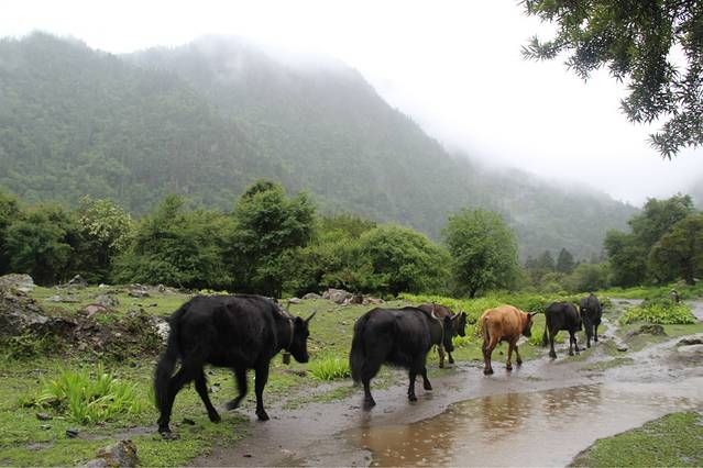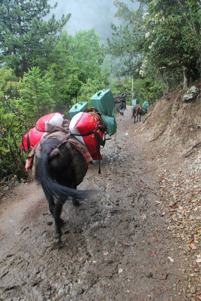 雨崩村里的东西基本上都是由骡子这么驼进来的,所以物价也贵,一盒泡面也要十块钱。而且我们去的时候正值下雨天,手机连个信号都没有,真心的世外桃源了,远离城市的纷扰啦~