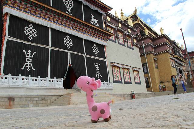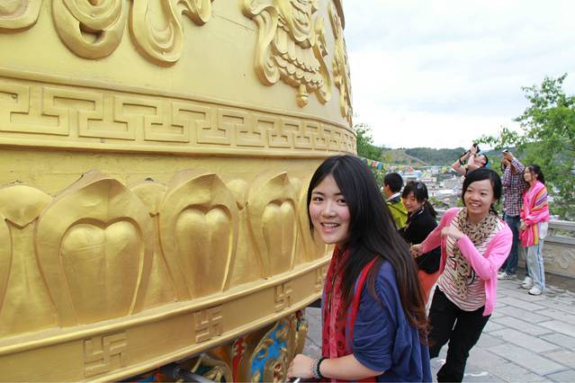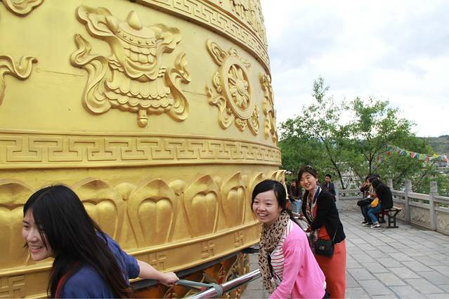 这个大转经,是世界上最大的转经筒啦~~没有几十个人休想把它转动!!我们都去转了三圈,沾沾福气,希望幸运之神可以眷顾到我们!但!!真的很重啊!!要大家一起喊一二三才可以转得动啊!!