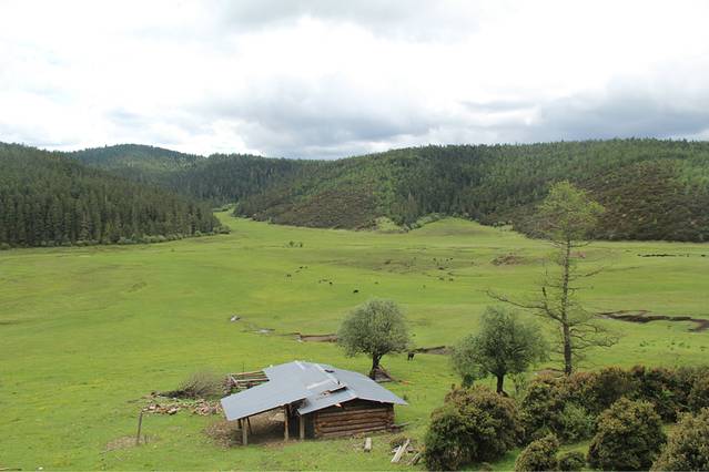 吃好鲜哒哒的土鸡,我们开车前往纳帕海啦~~这时才发现其实香格里拉是个很小的县城,渐渐地,其实我们都经过过了。。。路上的在山脚下的村落,想象着在两座雪山脚下的雨崩应该会更充满诗意和生气吧!