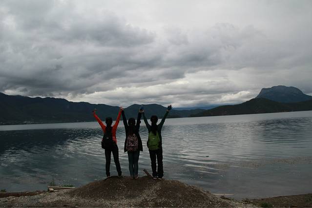 我只想说。。。虽然同是属于丽江。。。但是。。。泸沽湖真的好冷啊!!穿成这样的我们没拍多少照片就赶紧回去了。。。太冷了。。。