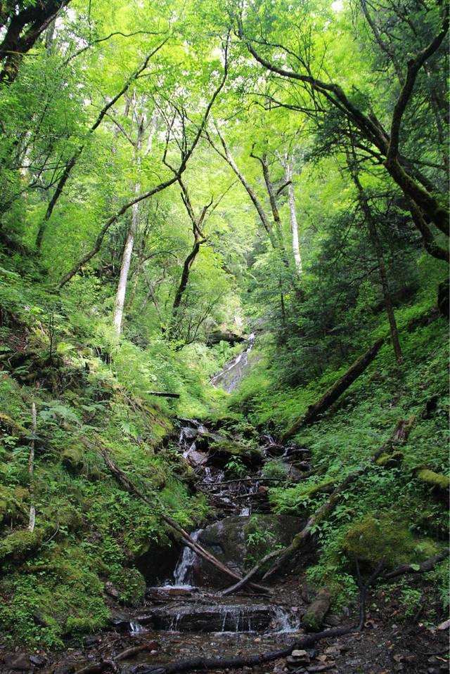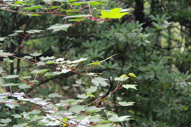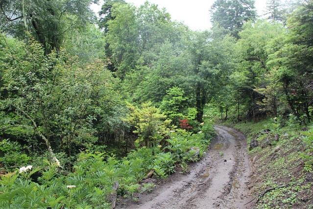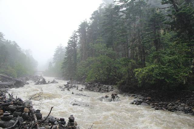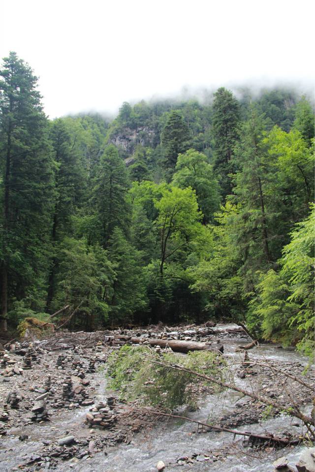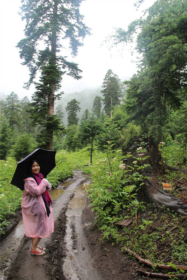 一路雨下不停,路上也一个行人都没有,岔路口,只能靠猜拳来决定到底往哪个方向走,后来,我们就这样勇猛地往前走,走进了一片原始森林,没有人烟,其实我的内心是害怕的,格桑说过路上会有野兽,会有狼,有熊,而我们三个妹子什么都没有带在身边,只有笑声。