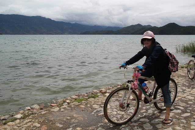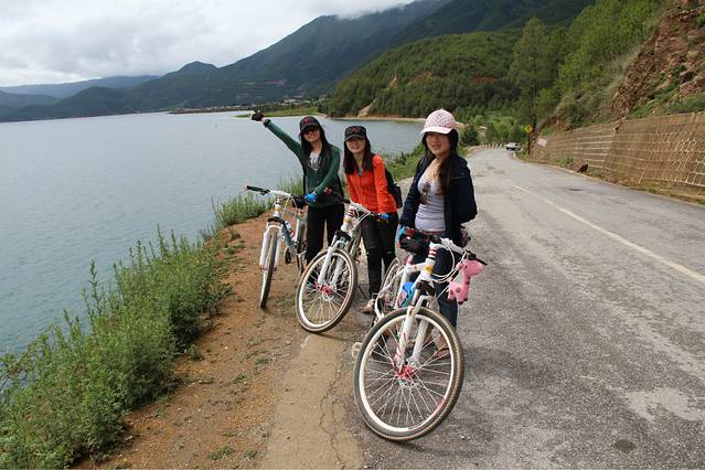 虽然前一天一点多才睡!!三点多还醒来聊天!!但是女汉子们十点多还是起床,去租车骑行泸沽湖啦!!要是能成功又是我一大壮举啊!还没有骑过这么远的路程呢!!泸沽湖租车是30一天,然后晚上九点前要还回来的。那个摩梭大哥还很帅的呢!!我们还问他有关于摩梭家访的事情,他说摩梭家访不要去博物馆这种地方,没意思的,就在你自己住的客栈里面问问老板娘有没有祖母房,看一下,讲解一下就好了。。。真够实在的!