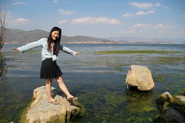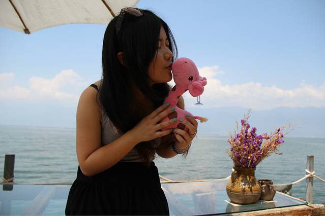 在这个所谓的海的对岸就是我们明天打算去的双廊,白族大哥说那边的景色比这边的美很多。但我已经觉得很不错了!