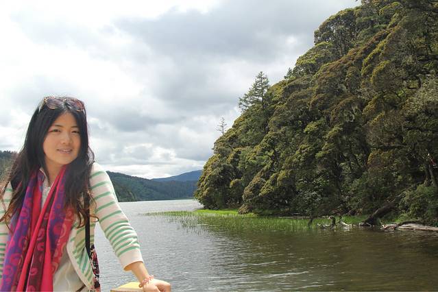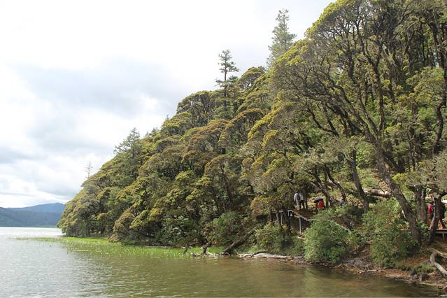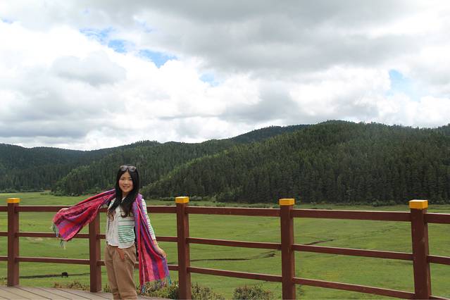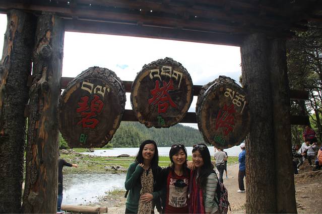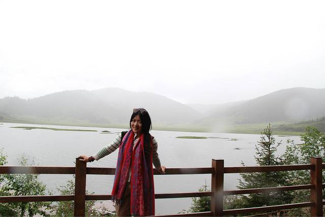 第二天,我们睡到很晚,前一天晚上太high了,在房间里狂唱歌,聊天,高反全无,中午去吃了大餐,下午就去了我们最后一站,普达措国家森林公园。我最最向往的地方,也是让我最最失望的地方。。。。天空不作美,微微下着淅淅沥沥的小雨,到了普达措,下车后明显会发现天气变得阴冷,穿着针织衫和长裤的我还是感觉到了丝丝凉意,另外一个美女姐姐还去买了件厚厚的披肩。普达措的门票还挺贵的,就算是学生票还是要快200的样子。
