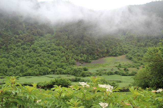 在下坡的时候还是往大路上走,我就是贪图一点点的小便宜,想往小路上走,抄个近道,结果。。。悲剧地手划破了,裤子也脏了,搞得脏兮兮的,本来就下雨,还好在路上碰到了一个东北来的大男孩儿,带我们去了他住宿的地方,其实都一样,女主人叫格桑,黑美人儿一个,到客栈大家基本都穿着冲锋衣,在那儿烤火,这六月七月的天,还要烤火,着实挺冷的,而且也没有热水,开始的一切似乎都不怎么吸引人,不过这也在我想象的范围之中,我做好了准备,只是我的小伙伴们似乎有点儿接受不了。