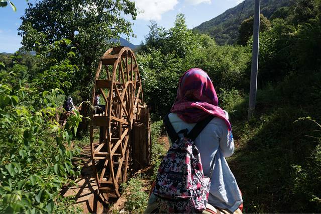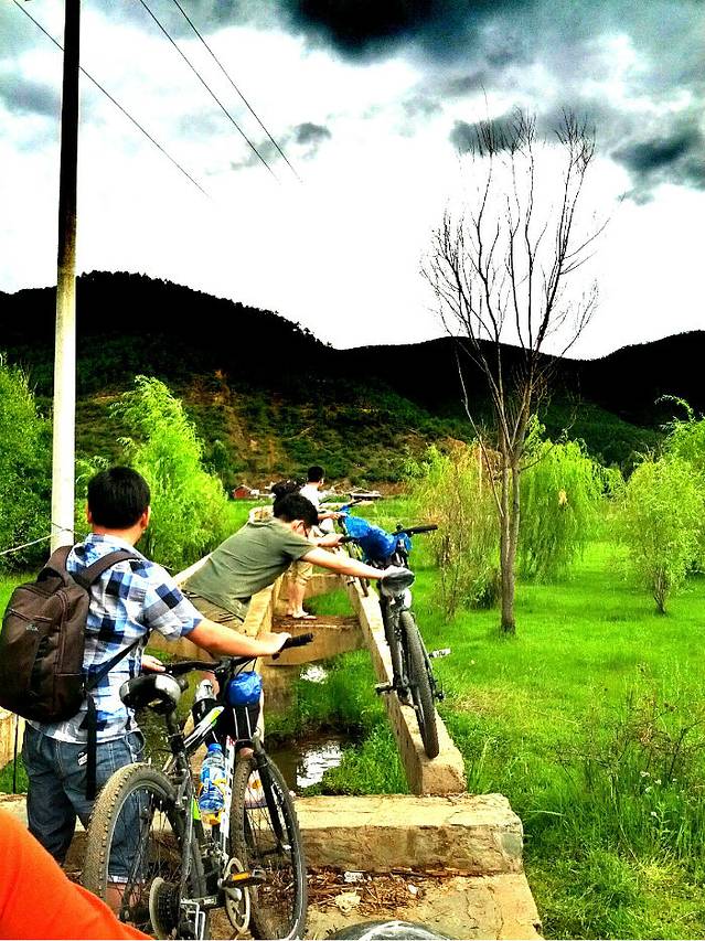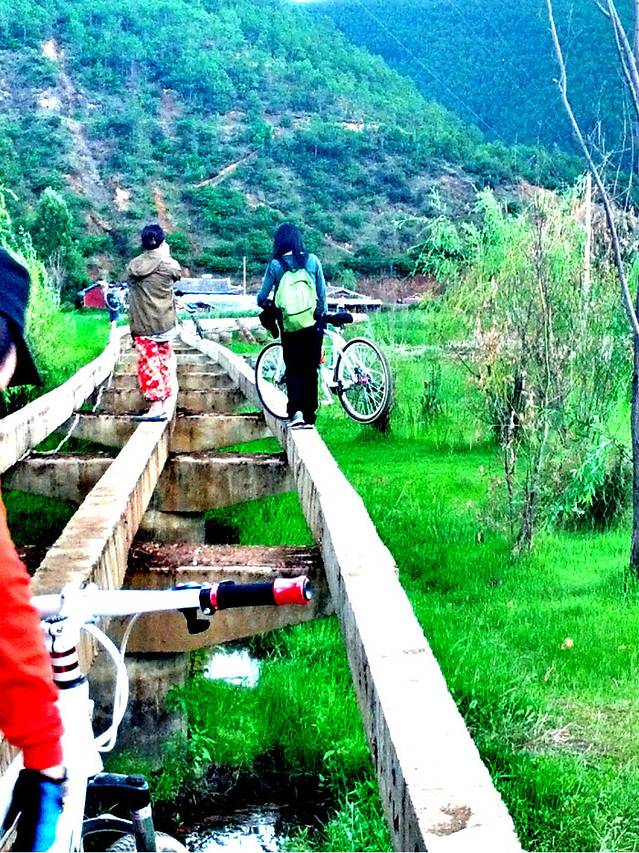 噗。。。这就是所谓的走婚桥。。。根本不能走车。。。本来盘算着把车慢慢推过去的我们被当地人阻止了,为了安全着想还是没有办法,放弃吧,往外面绕一圈,大概多个几公里的路程吧。。。没事。。。我们不累。。。不过其实不愿意多骑的话也可以坐船的。。。