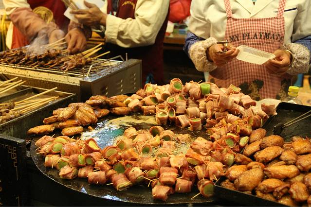 小吃一条街,这个大酒驾,真的很好吃!是培根包着莴笋,是我吃的丽江小吃里面最好吃的了!yammi!