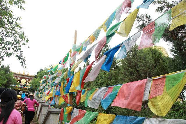 本来在丽江倒是有很多少数民族,但到了香格里拉,就是藏族的天下了,到处都能看到这样随风飘动的经幡。