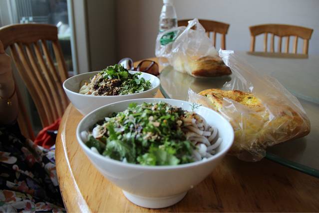 我们到了大理以后,去火车站门口坐8路车,可以直接到大理古城,但我们就在果子园下车了,看到路边的米线、饵丝,好想吃。。。才发现原来饵丝是这个味道。。。有点像糊掉的面,但是回味起来还不错,蛮有嚼劲的,我们之前在网上看了住宿,就直接找过去了。灰常便宜。。而且里面有很多资深驴友啊!!受益匪浅,也彻底颠覆了我们这次旅行的形式,决定再回味一下搭车的感觉!所以之后我们想从大理到丽江的话就搭车!不坐火车了。。。真是的!并且里面的义工还告诉我们怎么逃三塔的票之类的,不过我们运气不大好,三塔那几天查的比较严格,就没去了,不过本来也没怎么有兴趣。之后下午我们在果子园那边包了辆车,准备玩一下喜洲古镇、苍山,然后晚上去大理古镇溜达一圈儿。挺便宜的,这么些地方,也就60块,我们两个妹子再加上在青旅认识的小弟弟他们三个孩子。。。在人民路上吃好午饭,我们就开路了!在云南,我把我活到这么大所吃的米线都重新吃了个遍!哈哈