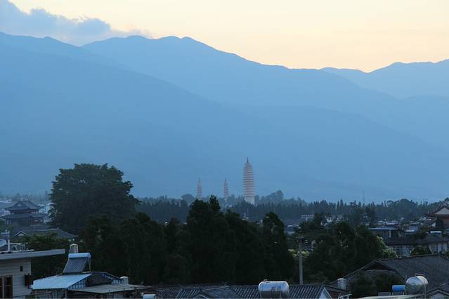 我们花了两块钱登了南门的楼,发现视野好辽阔!有苍山,有三塔,有洱海,有成群成群的白族建筑,还有云卷云舒相伴,不忍离去。