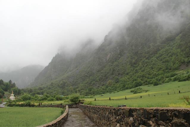 烟雾缭绕的牧场,真的犹如仙境!我们问路的那个喇嘛就是在这个小房子里出来打水的!