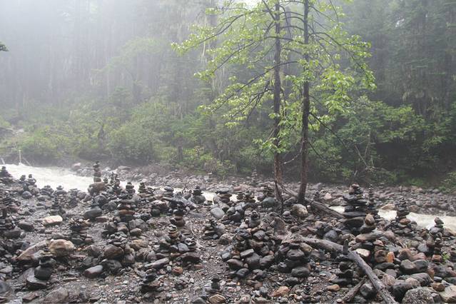 接着,就开始往下走了,前往大本营的路途,已经完全顾不上鞋子有多脏,脚有多疼,只想快快到达彼岸!路好走了很多,一路上都是尼玛堆。