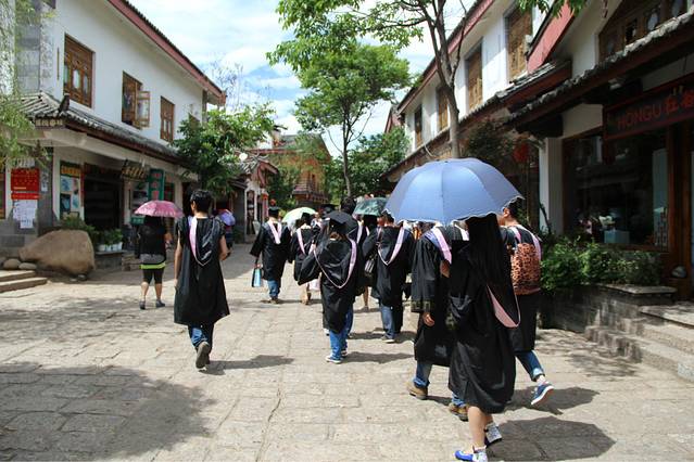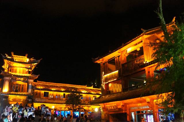 那天结束后,心里满满都是懊悔啊!!为什么不和那萌小伙跳一下。。。反正谁也不认识谁。。。大家也都碰不到了嘛。。。我真的是太怂了。。。那里的酒吧晚上十一点半就没有表演了,我们就准备往南门走了,结果在四方街听到阵阵歌声,很多像我们一样来丽江的大学生坐在台阶上大合唱,of course,我们也加入了其中,还带领他们一起唱了首最炫民族风。。。哈哈哈 大家反正都恨high。。。在丽江的第一天爽爆了!