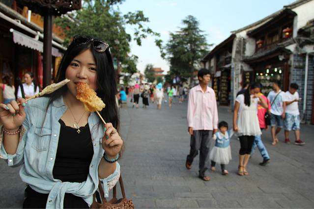 恩!!!烤乳扇~~真的很好吃!!我很喜欢啊~~不过是那个卖相不大好看的白色的比较好吃!在古镇里面还有生的乳扇可以买,当时我们想丽江肯定也会有,我们就不想拿那么重的吃的过去丽江了,就没买,结果。。。。结果后来到了丽江才知道那里没有啊。。。。好可怜。。。。乳扇就是乳制品,有点酸酸甜甜的,反正我是很喜欢啦~