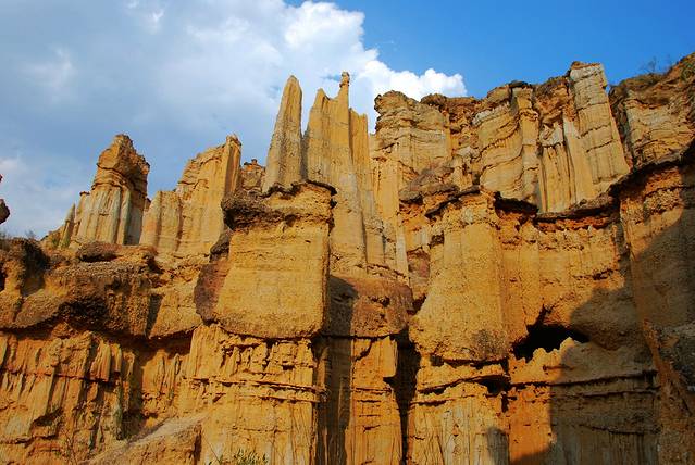 但不可否认这里的土柱造型也是千变万化的,幽谷地缝也显得深远宁静,还有一些高悬半空的洞穴天门、惟妙惟肖的沙雕泥塑,除了感叹大自然的鬼斧神工和精心雕凿外,对我来说好像缺的就是那份触及内心深处的震撼吧!