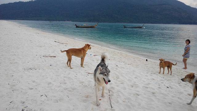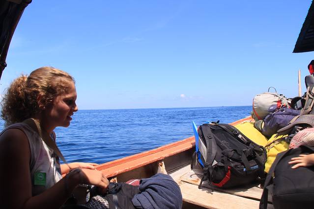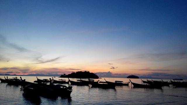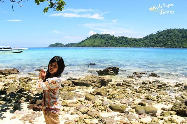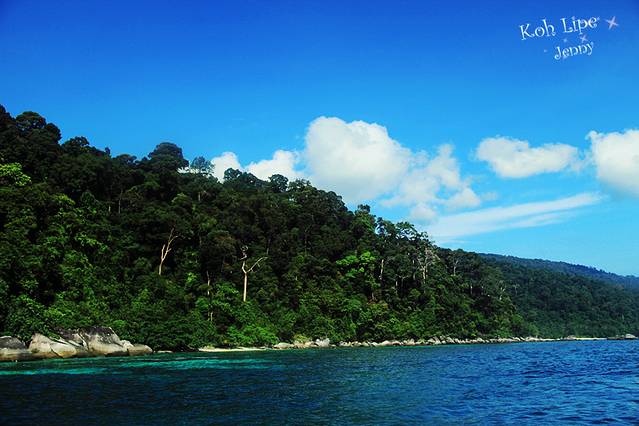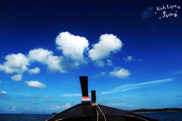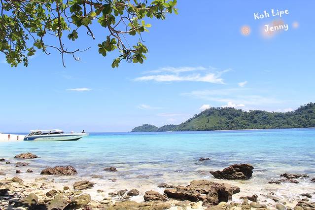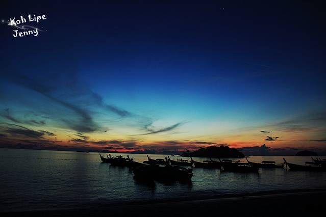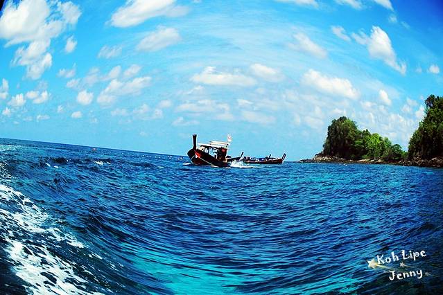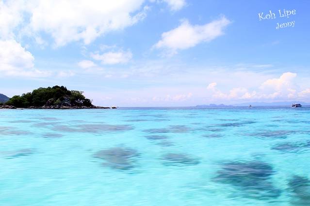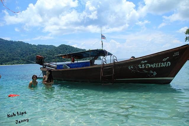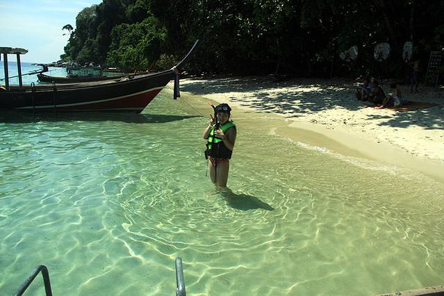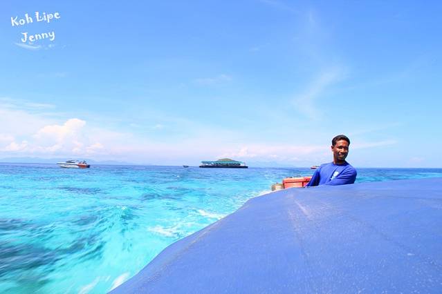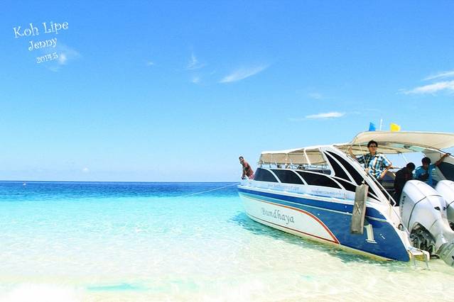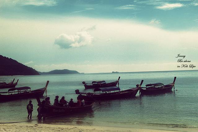5月开始就到了丽贝岛的淡季了,每天往返丽贝的船只有一辆,我们是早上8点45到的合艾,11点多到的码头,再坐了1个半小时的船才到岛上。我们一路上都吃了在清迈买的晕车晕船药,就像安眠药一样,摇头晃脑地终于等到船停了,我们很傻X地拿着零食下船,自然是以为到岛上了,然后看着快艇开始往另一边走了,我们还傻乎乎地上去问我们的行李怎么办,人家手画脚画的不知道在说什么,搞老半天才明天他们是让我们在这里看一下风景,当中停一下而已。。。