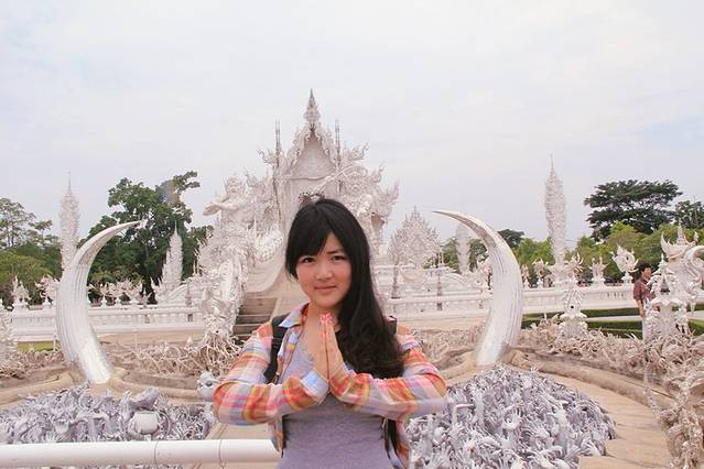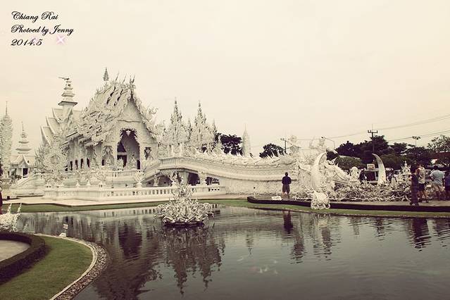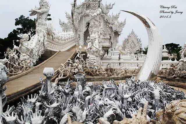 这样通体纯白的建筑真的很不同于其他的泰国 庙宇,不去会后悔,看到被震歪的塔顶了吗?