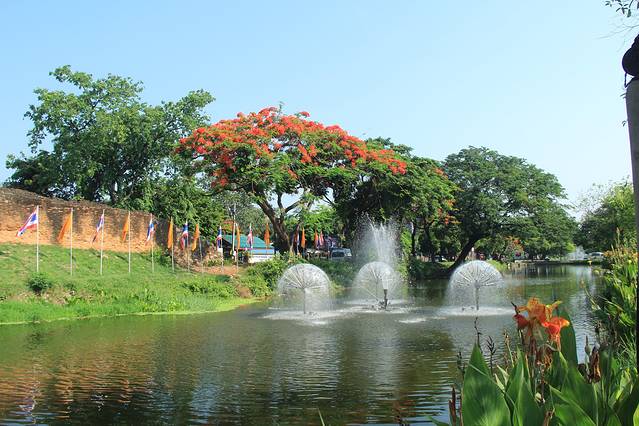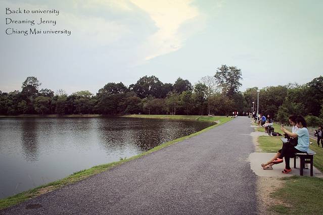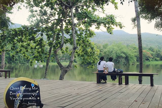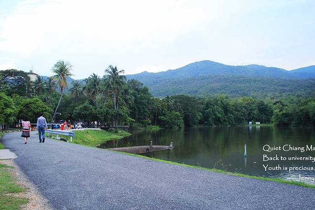 偌大的清迈大学里有一个小湖,很多人坐在河边聊天,嬉戏,自拍,看上去也有很多泰国小美眉,难道每天在自己大学里自拍也这么开心么。。。还有一些阳光型男在坡上玩自行车,远远地看上去真的挺酷的!