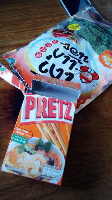 一早我们就到lobby等着,清迈人的生活真心悠哉,无论是胖哥哥还是老板娘都不在。。。只有一个老美一直在楼下,每天早出晚归的我们也总是能看到他的身影。。。不是躺在沙发上睡觉就是在玩电脑,不然就和胖哥哥打扑克。。感情好啊~吃着好吃的海苔,在冬阴功味的poky~