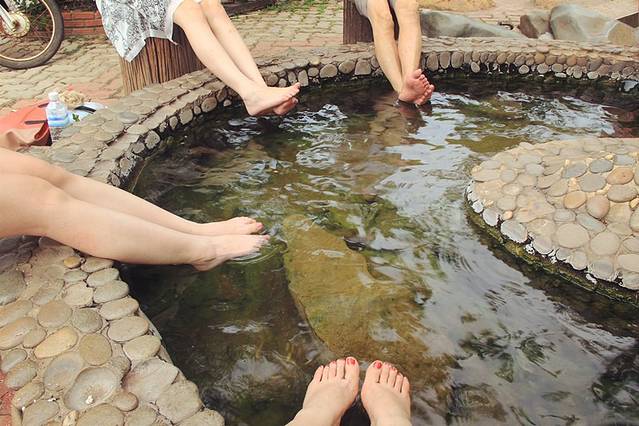 向导一看到我们就和我们道歉,说司机路开错了,找到另外一家Backpack house去了,所以晚了一些。车上,向导用不太流利的中文介绍自己,原来是祖籍是云南 的清迈人,面对一车的中国人,深有一种在国内抱团的FU,不太好,虽然阿财的服务不错,有问必答,可是上车睡觉下车拍照的节奏我还是不喜欢。。。开了一个多小时后之后到了水晶晶老板娘说的温泉的地方。。。我们有了前一天的经验,就在里面穿了BIKINI,结果。。。结果。。。是下图酱紫的。。。我去!!!哈巴。。。真的哈巴。。人家只是让你泡脚而已。。泡脚。。。穿毛线bikini啊~~~T T 骗纸。。