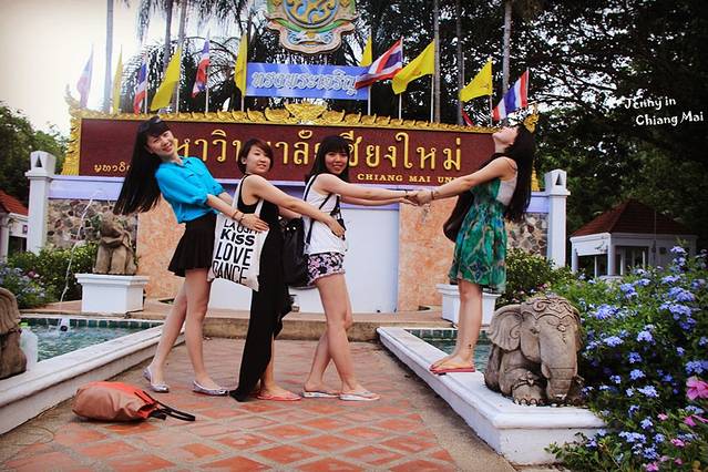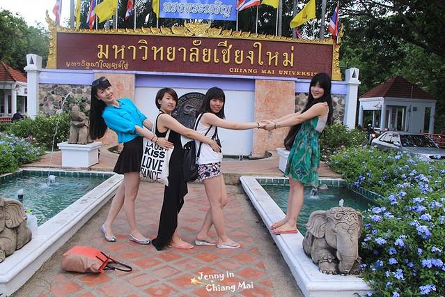 在清迈大学门口拍照时,另一群青春洋溢的人对我们说萨瓦迪卡,我们来了句,,,你好。。。。国人是国人。。哈哈 相互拍照吧~~在异国他乡的大学门口留下我们对青葱岁月的留恋。