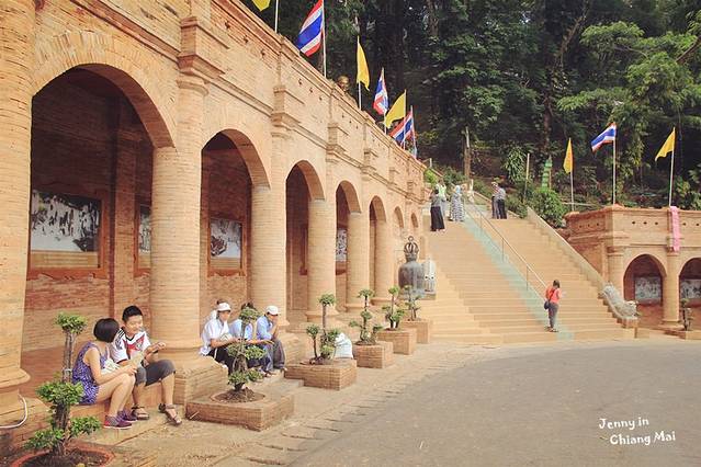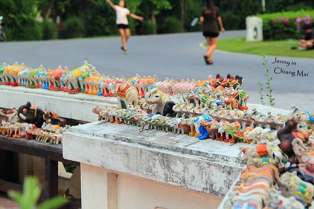 在清迈大学里有一个寺庙,也有一个像供奉台兮兮的东西,上面放了很多大象。可以看到远处还有两个在打羽毛球的妹子不小心入镜了呢~呵呵