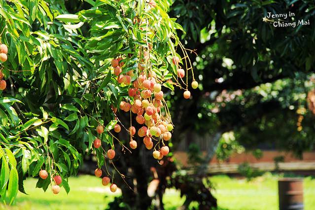 很Q的荔枝哈~~摘了一颗放嘴里,只能说,还是我大天朝的妃子笑好吃!!哈哈,清迈的荔枝略酸,即使是被农民伯伯卖的荔枝还是有一点酸呢~