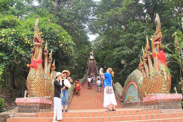 前往素贴山,在mall门口有很多双条车的司机,我们随便问了一个,他们说素贴山还有很远,可是想坑我嘛!!清迈才多大啊~~要500B走一个,昨天晚上刚刚被坑好嘛!!five 哈雷 five 哈雷,讲的英文听也听不懂,最后那老坑货还是秀出了泰铢我才懂是500B呢~~~BYEBYE~~老娘才不坐呢~~