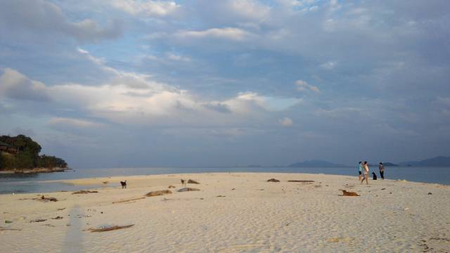 第二天早上的日出,十分微弱,淡淡的,微弱的泛着黄光,小伙伴又该伤心了。可是不愿离开却又不得不离开的我们,抓紧最后的时光,和一群带路狗一起,走向sunrise beach的另一端。