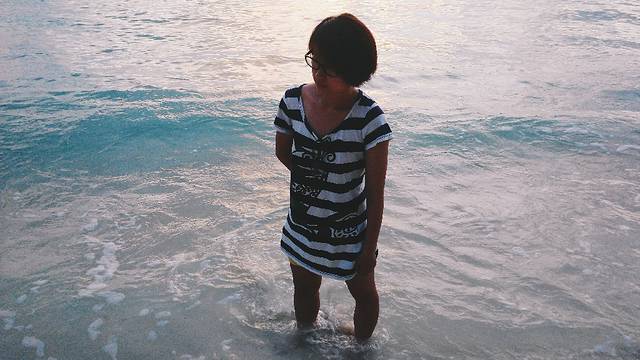 即使是在海边,这么靠近沙滩的地方,也是有很多小鱼的,水质太好了!而且根本不怕人嘛~~