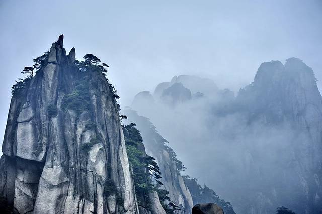 这样的景致,酷似中国传统的水墨山水画卷,就在我们目光所及的眼前,一幅幅的铺展开来。这大自然的水墨画还能随着山风吹拂,瞬间变幻,缓解了我们登山的疲劳,带来各种惊喜。