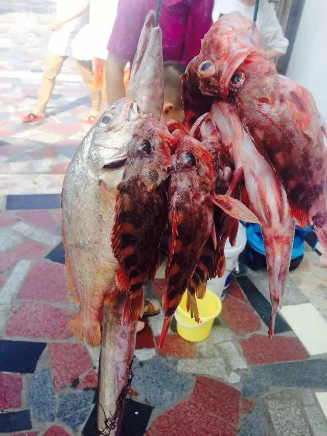 出海钓鱼:3人以上80元一人。2人以下240包船,建议小小潮的时候出海,可以打捞很多丰富的海产品,我们由于是阴历8.18,哎,打捞的东西很少很少!