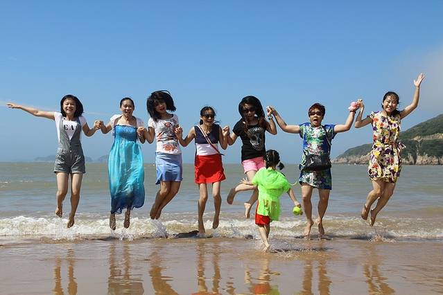 下午:在嵊泗著名景点基湖沙滩(门票40元)享受大海的美景与温情。先来个日光浴,再在夕阳下漫步沙滩,或把自己舒舒服服地泡在海水中,也可选择沙滩边上的娱乐项目,如摩托艇、沙滩排球等。