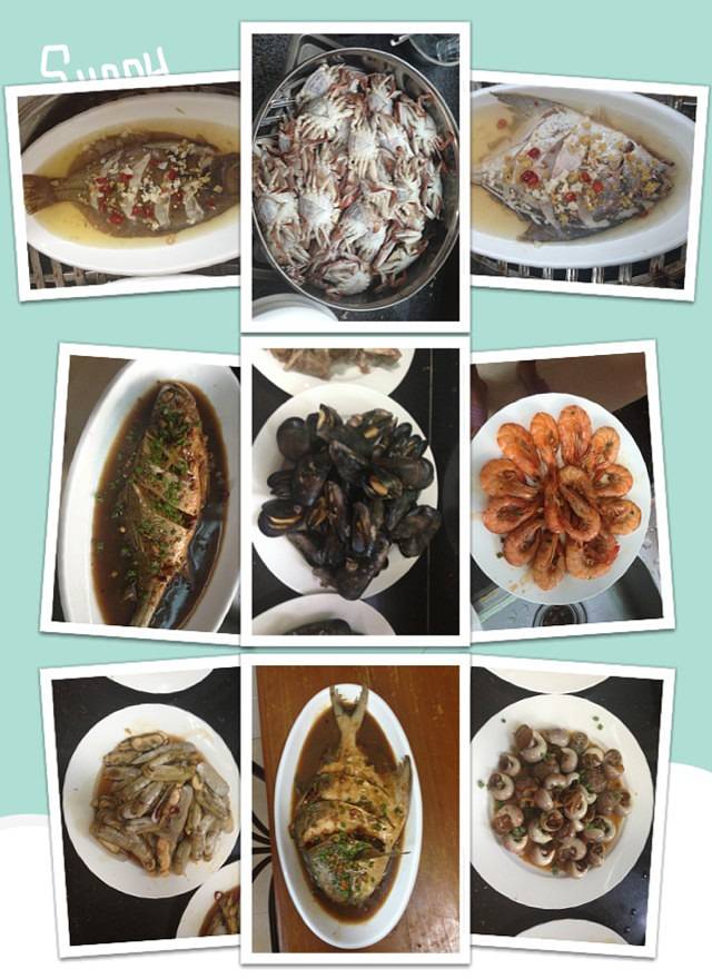 晚餐:定房间时就让房东准备丰盛的海鲜,回来后即吃。价格约100元/两人,吃得不错。