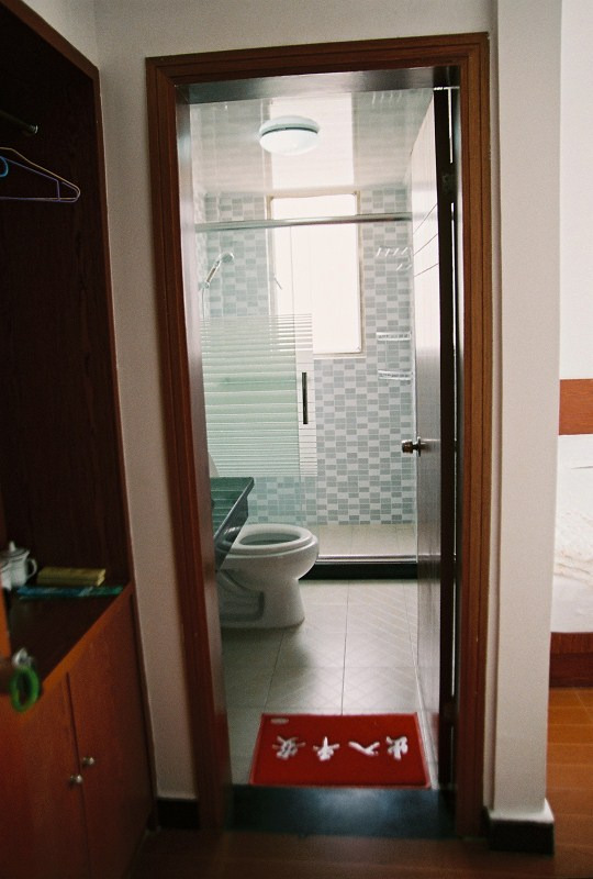 到达嵊泗李柱山码头后,打车(20元)至基湖沙滩边的金沙路,找好一家家庭旅馆住下(价格约80元/两人间)。