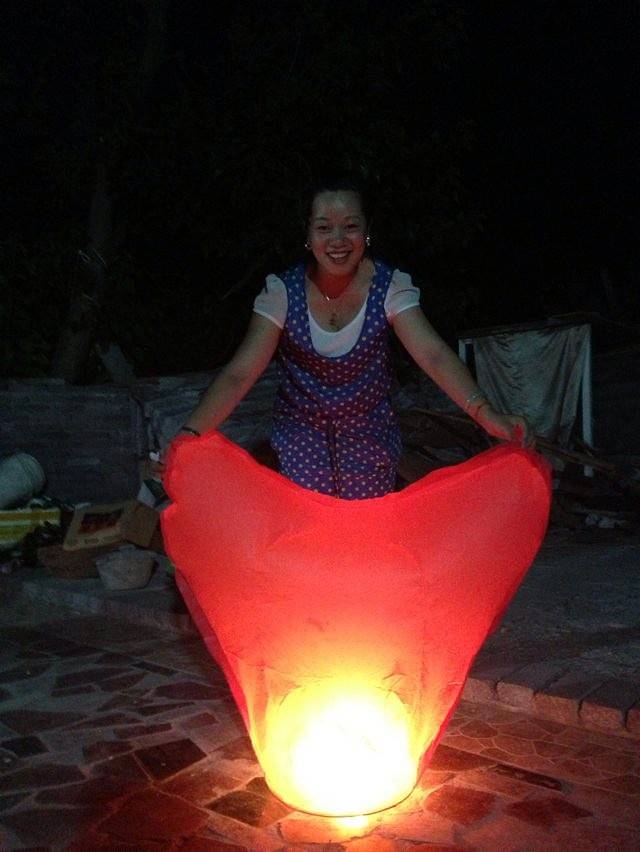 当晚我们还放了孔明灯,5元一盏。小技巧:在被风处,点燃后直接放在地上,等氧气很充实后,很容易就起飞啦~~!