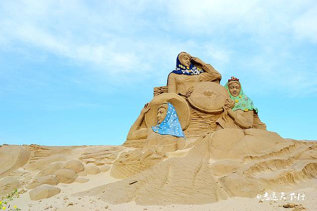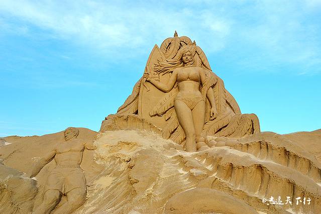 拔地而起的壮观金色的沙雕园,那一座座精雕细琢的沙雕,像是历经千年的大地的艺术品,就屹立在这璀璨的翡翠湾沙滩上,引着我们走进探索世界名景。