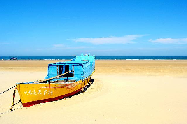 老天是眷顾我们的,即使已是立夏时节的酷热正午,却给我了一个蔚蓝的天气,那种蓝,是海天一色的蓝,是彻底的,是深邃的!而绵延数公里的细软海滩,像一处洁白的圣地,恰逢一场美丽的邂逅!