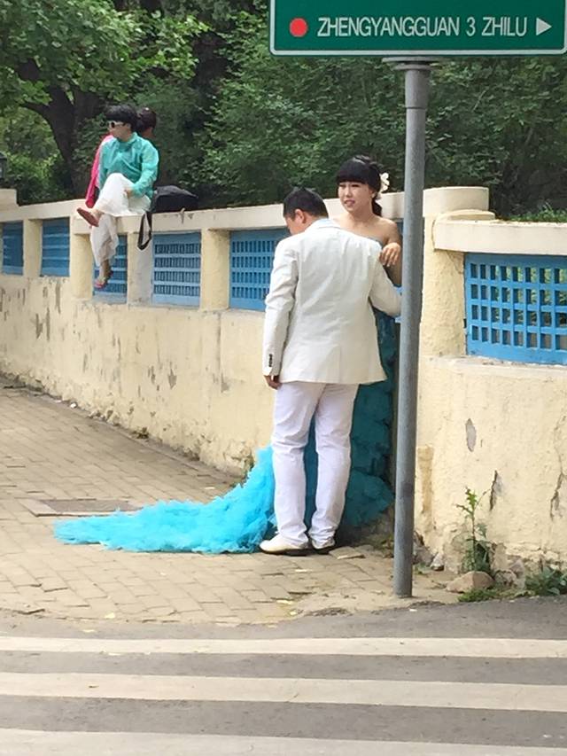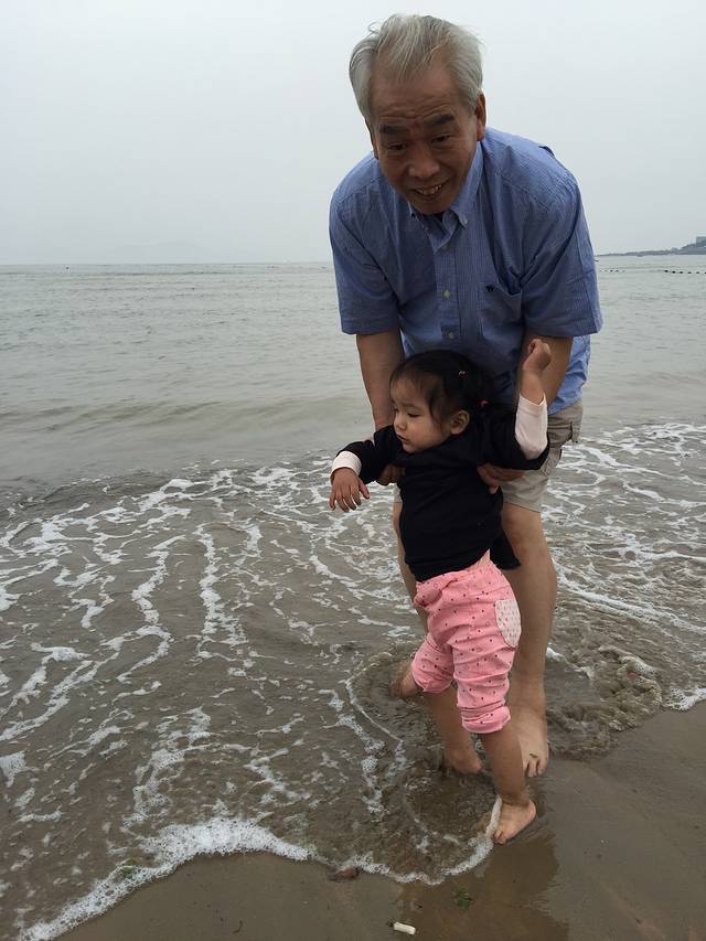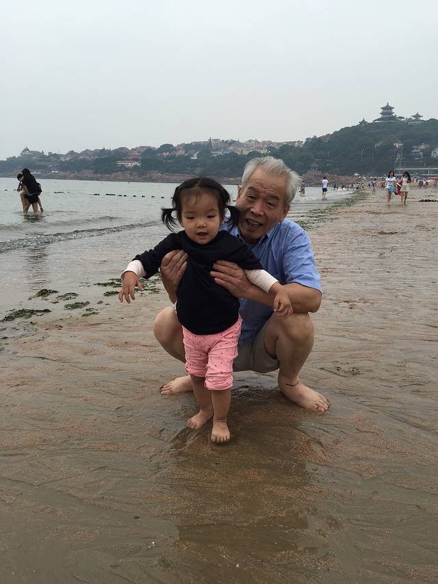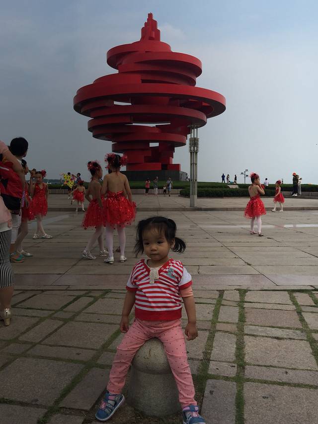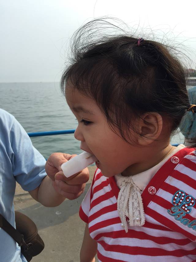 吹吹海风,看看大海,还有天上的风筝,很舒服。遇见一群表演的孩子,穿着演出服,阿宝冲进人家的队伍,二话不说要和别人玩,小姐姐躲,她就追,自己玩得不亦乐乎