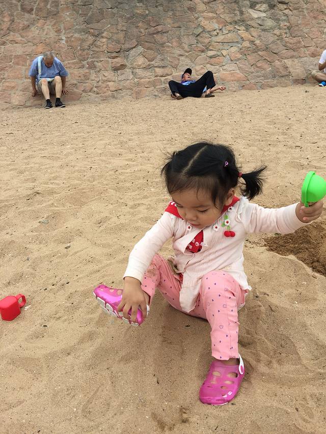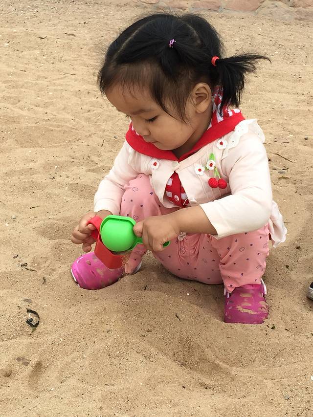要带好多好多琐碎的东西,都是阿宝的。可惜没有专门给她准备挖沙玩具,害得她总是眼馋别的小朋友的,要去抢着玩,搞得我一直很尴尬