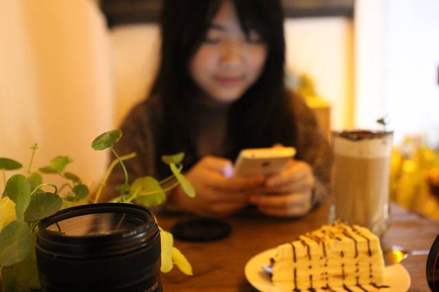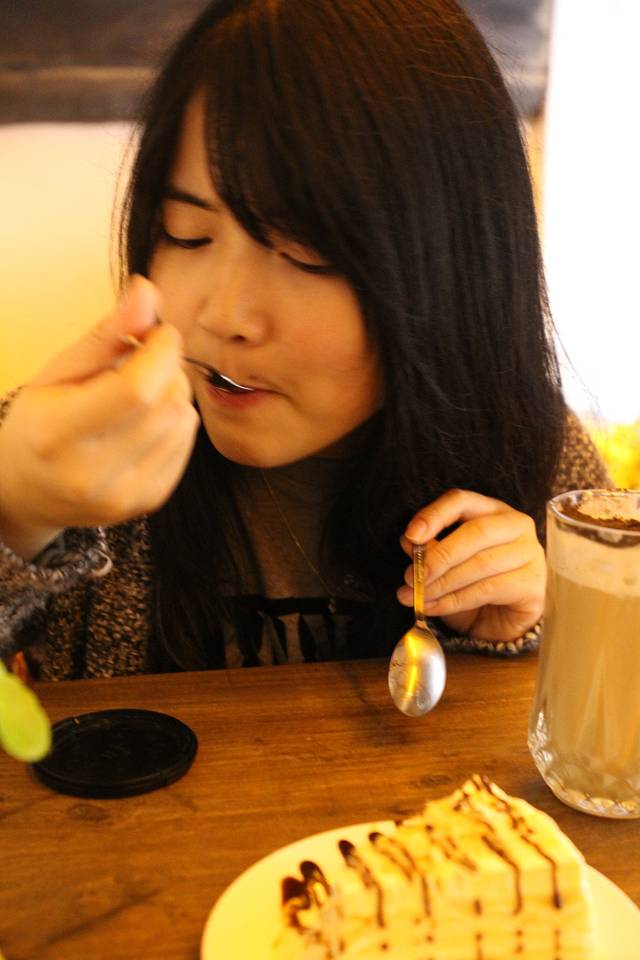 我是有多贪心!!一口蛋糕,一口奶茶,两个调羹一个都放不下!哈哈哈
