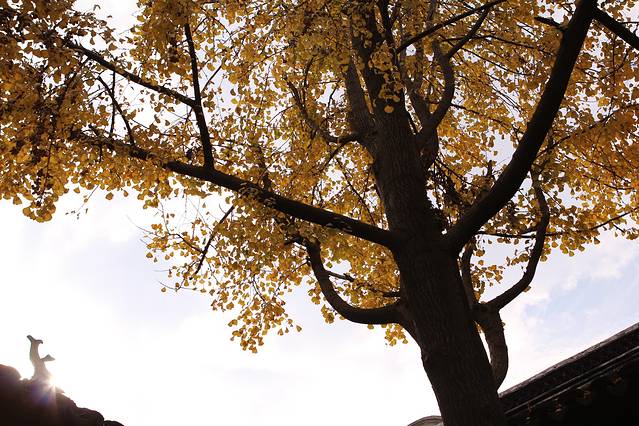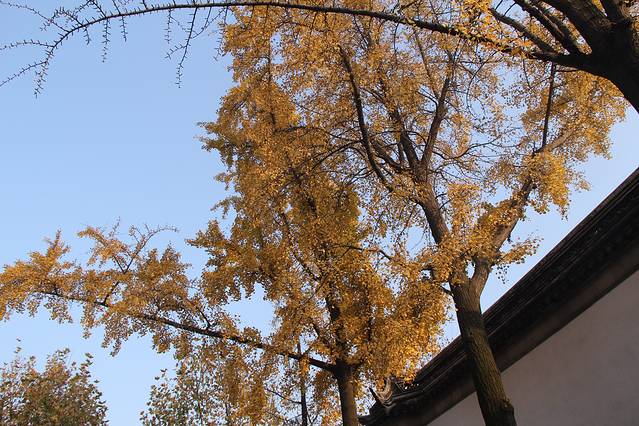 狮子林门口的那颗银杏树。(狮子林门票30)