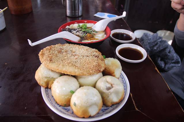 大大的生煎,蟹壳黄,还有豆腐花!