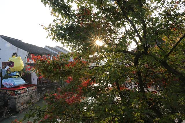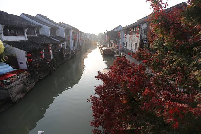 清晨起来,安静的山塘街,看到一小簇泛红的枫叶,似乎为我们今天的主题,天平山开了一个好头!